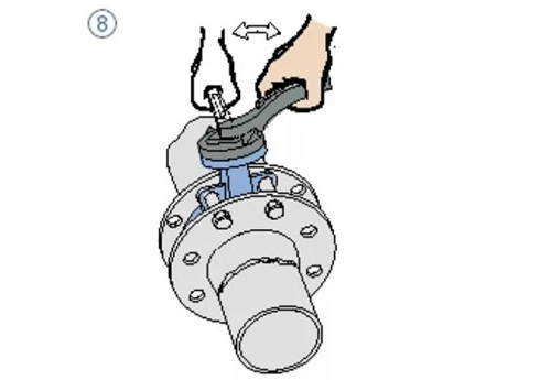 10) Re-confirm that the valve can open and close freely. Note: Make sure the valve plate does not touch the pipe.